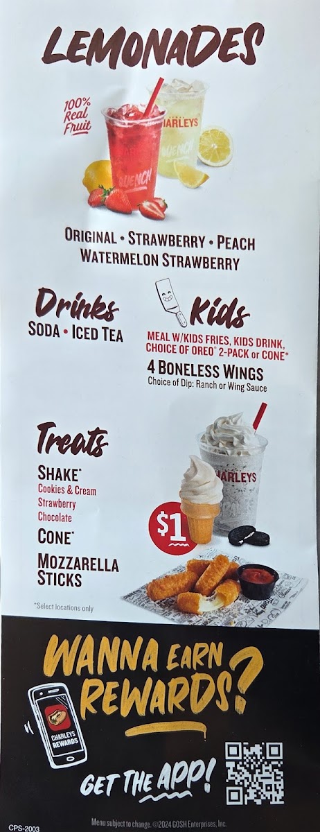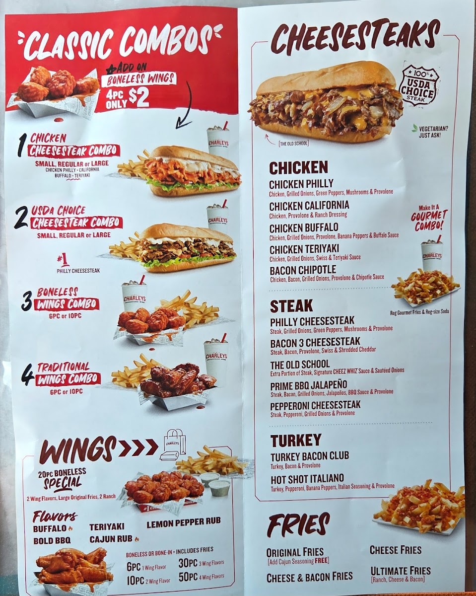 Their cheesesteaks are made with freshly sliced, tender meat, piled high with melty cheese and all the toppings you crave. For wing lovers, Charley's offers an exciting range of flavors, from classic buffalo to something a little sweeter. Every dish is served up hot and fresh, making it easy to see why this place has become a local favorite. If you're looking for great food, generous portions, and a welcoming vibe, this menu is all you need to satisfy your hunger.